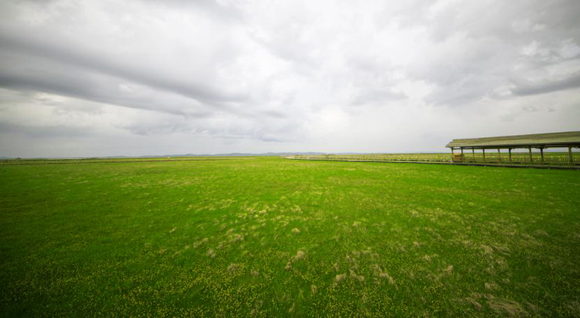 清晨的草原,格外寧靜。當我們身處在草原上最大的天然海子——“花湖”,當?shù)氐牟刈逋欠Q之為“美朵湖”的黑頸鶴繁衍生息保護區(qū),極目遠眺水天一色,綠草野花令人心曠神怡,煙波葦蕩令人肺腑盡滌。