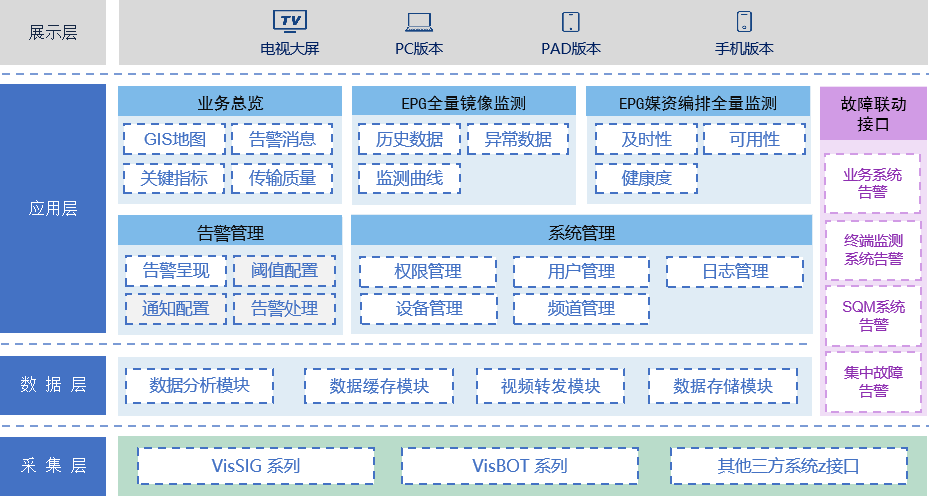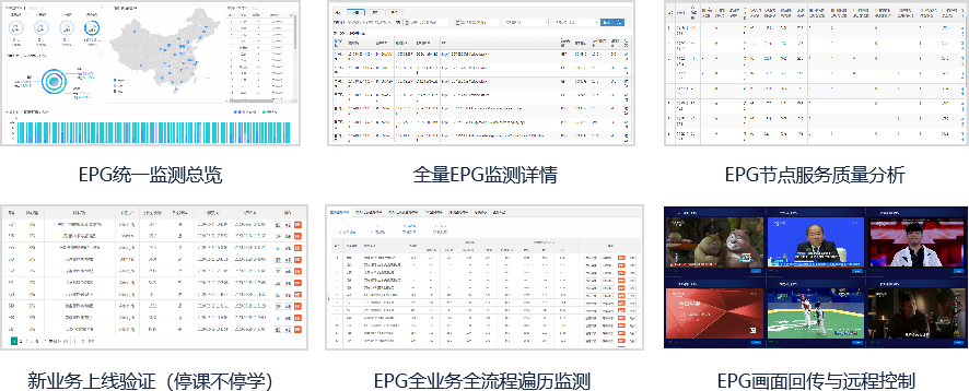 通過控制真實機頂盒的方式,對EPG全業務(認證、直播、回看、點播、游戲、音樂等)進行撥測,并提供全流程分析能力。支持進行EPG全業務撥測,支持對認證、直播、回看、點播、游戲、音樂等進行撥測,及時發現業務異常。