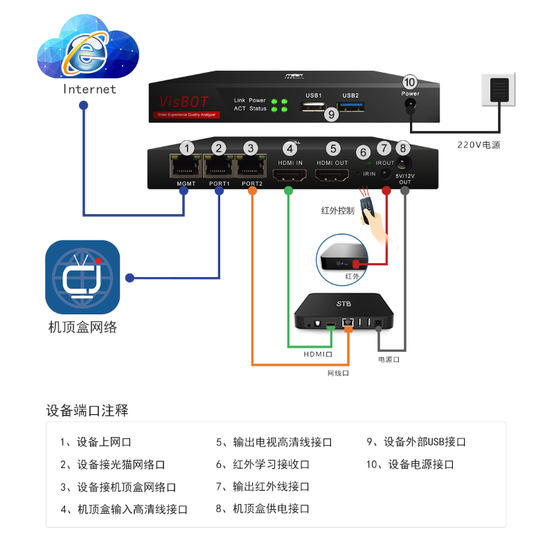 1. Internet Port 5.HDMI OUT 9.Outside USB