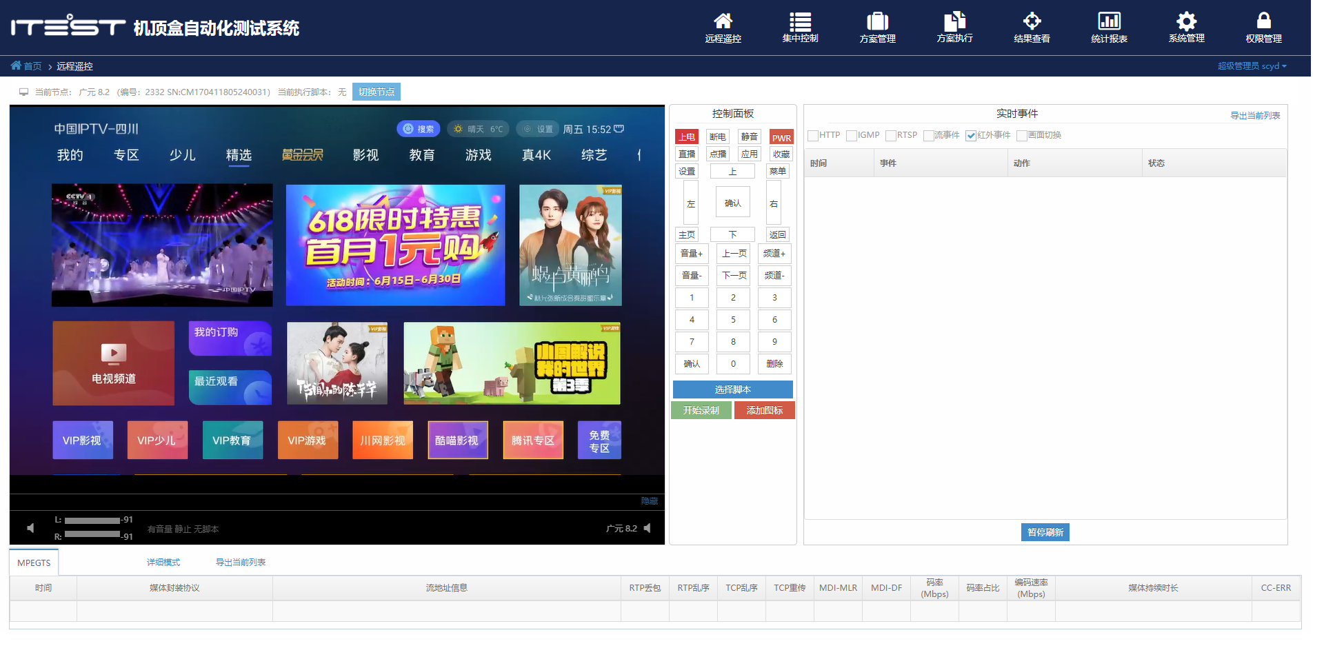 The video content screen is directly obtained from THE HDMI output of the STB by using a real STB, and the infrared control of the STB is carried out by simulating the actual operation of the user, so as to completely restore the user's real experience and realize the test of the set-top box boot/live broadcast/on-demand /EPG.