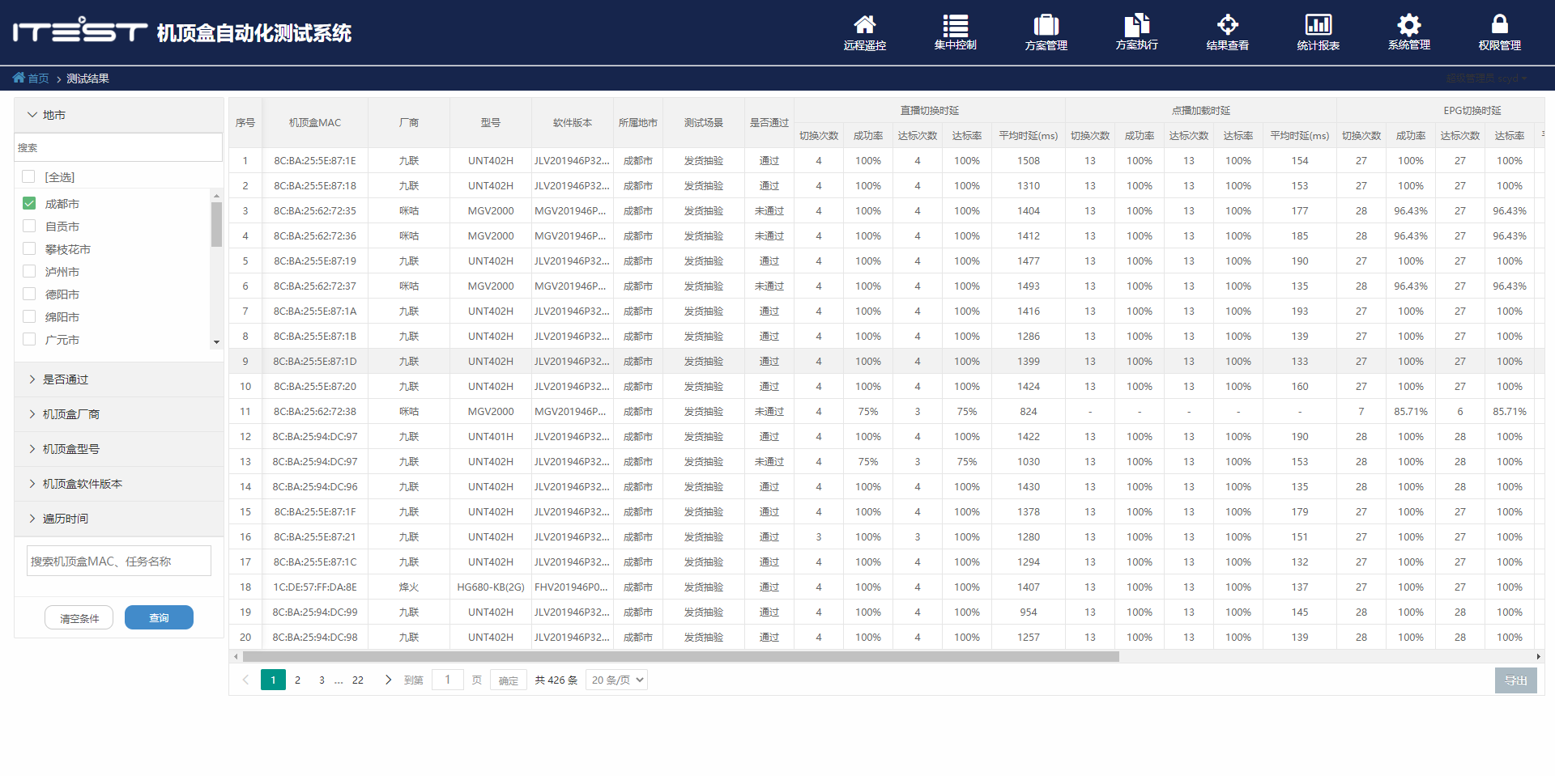 Statistics: statistics of all cities and set-top box pass rate ranking